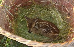 Es verenden jährlich ca. 100.000 Rehkitze, weil die Wiesen vor der Mahd nicht abgesucht werden.