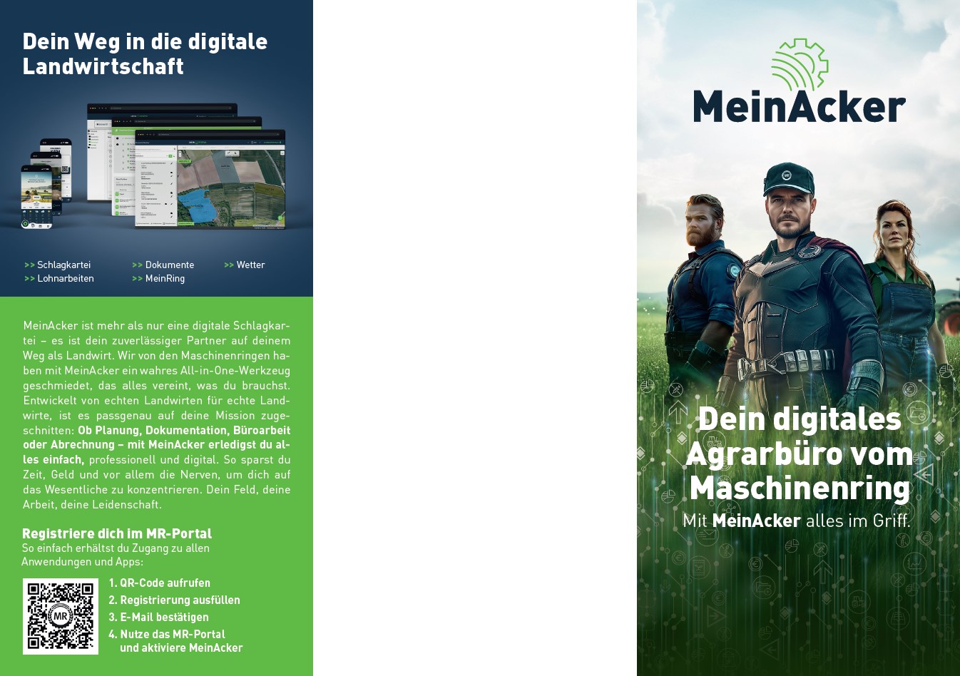 MeinAcker ist mehr als eine digitale Schlagkartei oder eine Büro-Software. Wir von den Maschinenringen haben mit MeinAcker alles, was du als Landwirt brauchst, in ein Paket gepackt. Erledige deine Planungs- und Dokumentationsarbeiten, Büroarbeiten und Abrechnungsarbeiten ganz einfach und digital. Zusätzlich zur digitalen Lösung haben unsere Fachleute Christioph Englert und Thomas Braun viel fachliches Know-how.